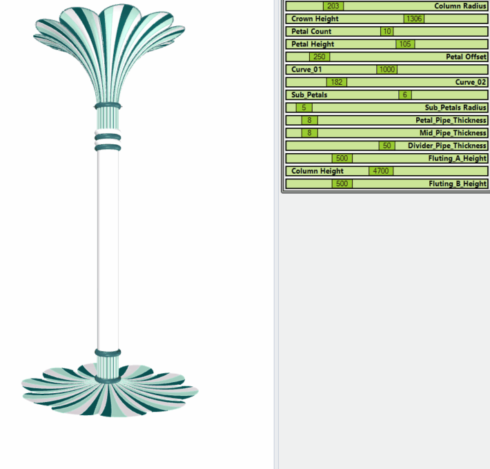 A parametric Column generator designed using elements inspired from the shape grammar of egyptian columns.